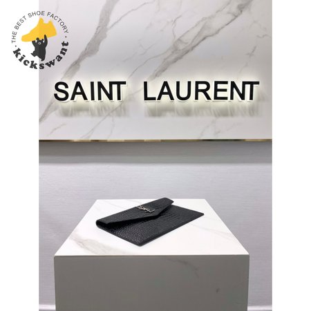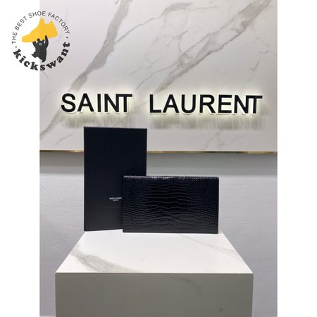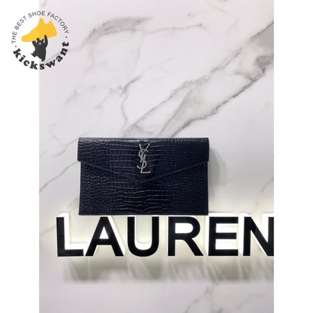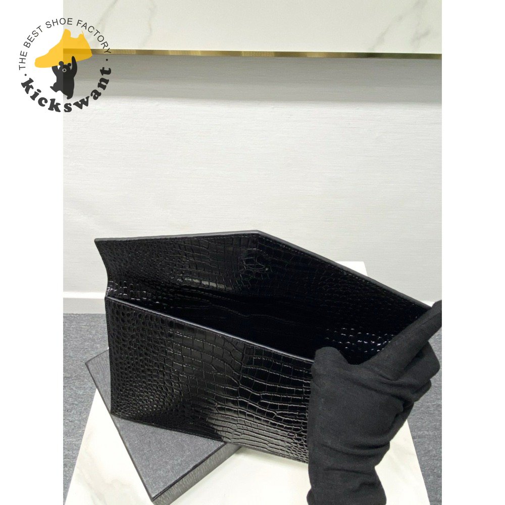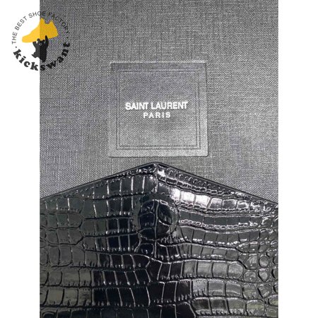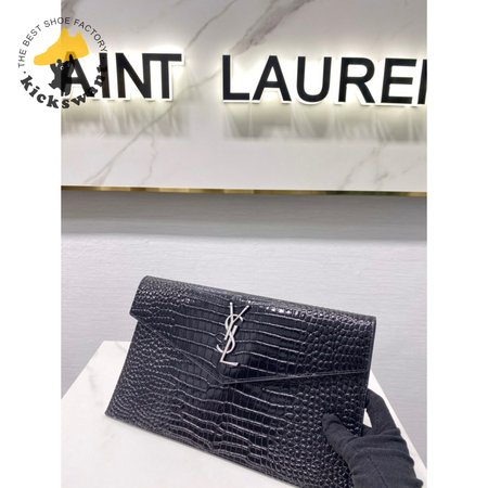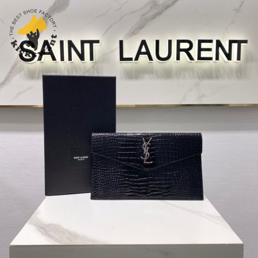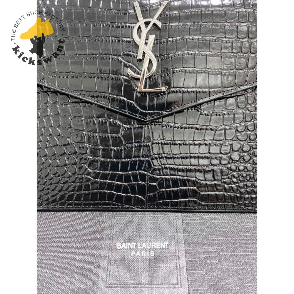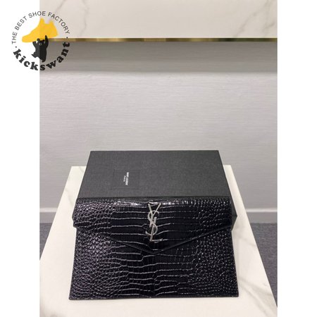 Saint Laurent Uptown Pouch Shiny Crocodile-Look Leather Black