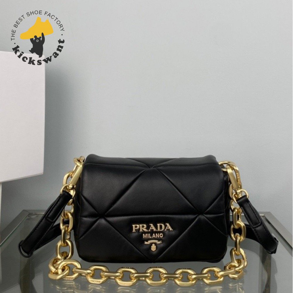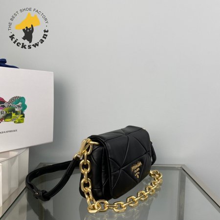 Prada System Nappa Patchwork Shoulder Bag Black 1BD292