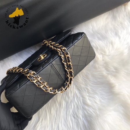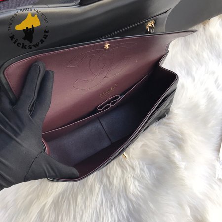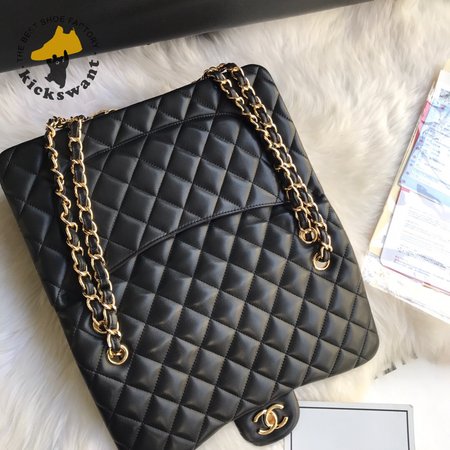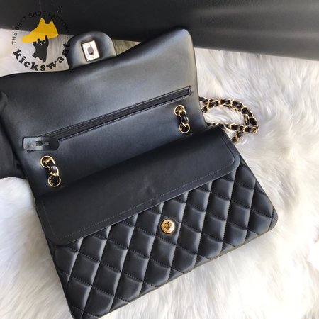 Chanel Classic Double Flap Quilted Lambskin Gold-tone Jumbo Black