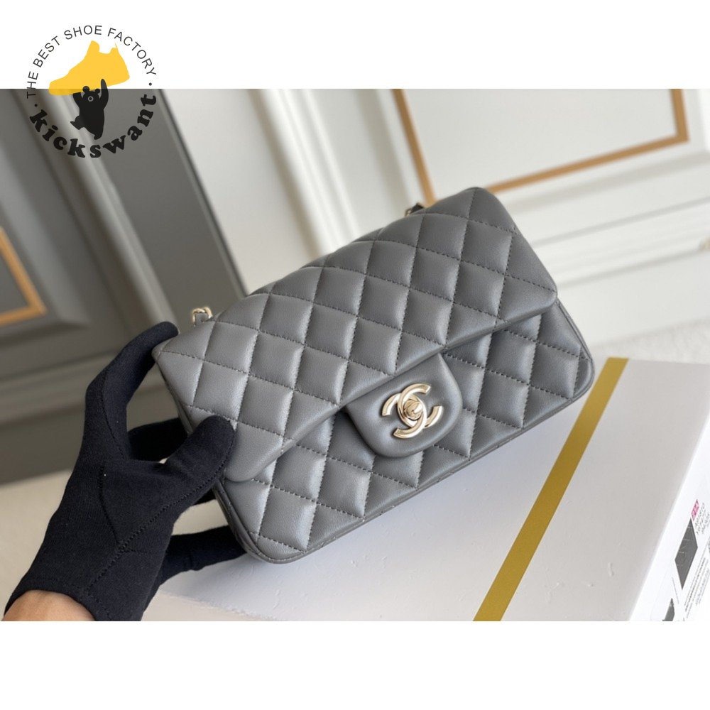 Chanel Quilted Mini Rectangular Flap Bag Grey
