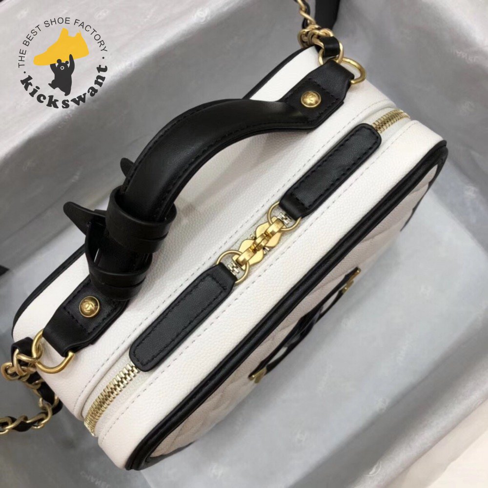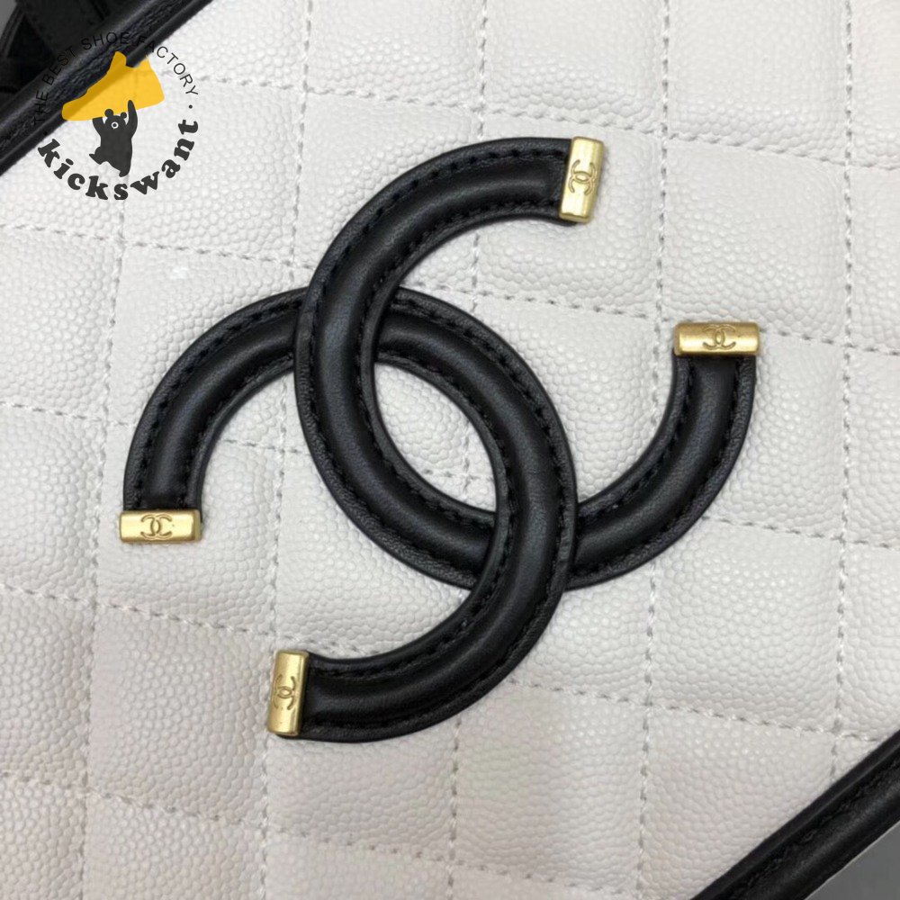 Chanel White & Black Quilted Caviar Leather