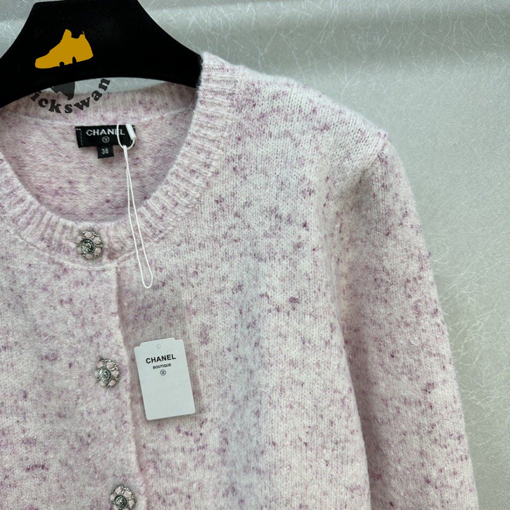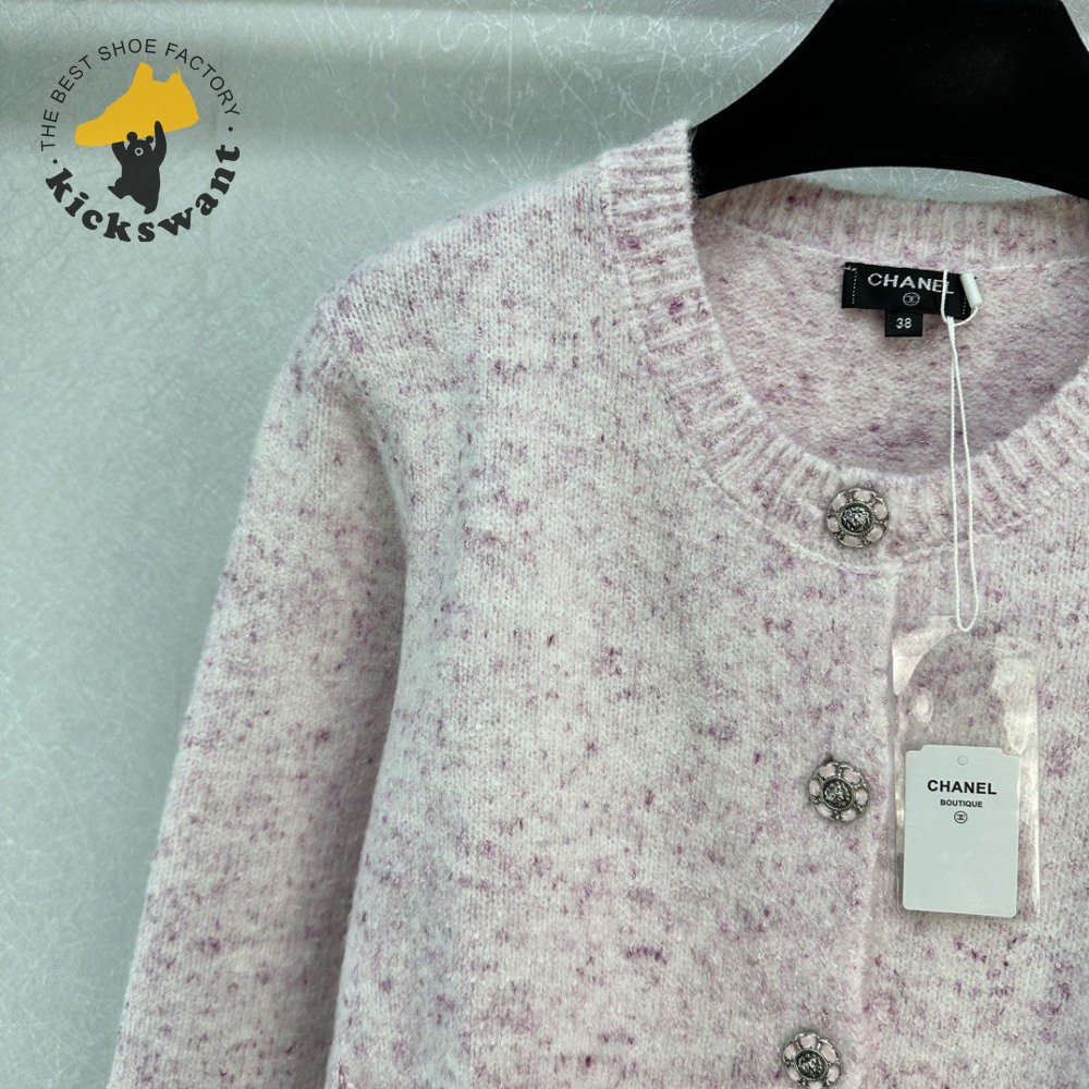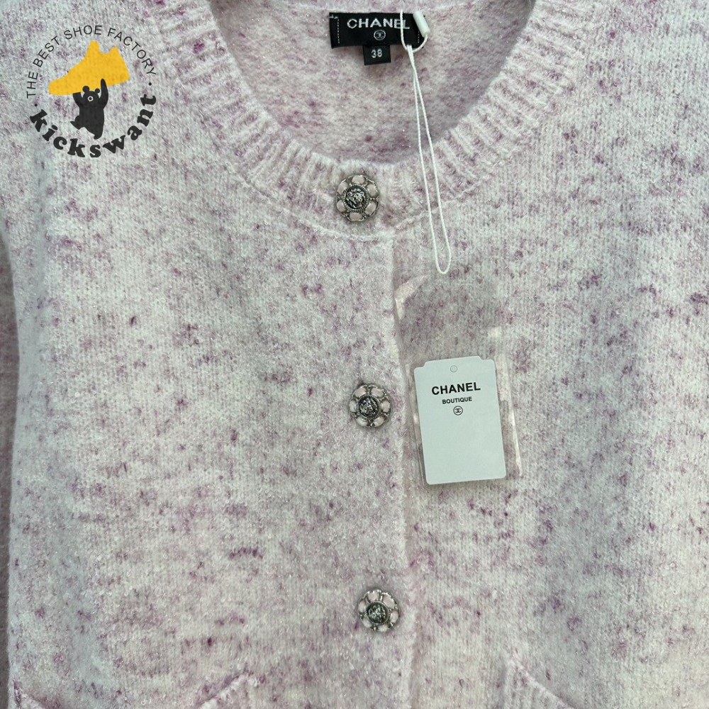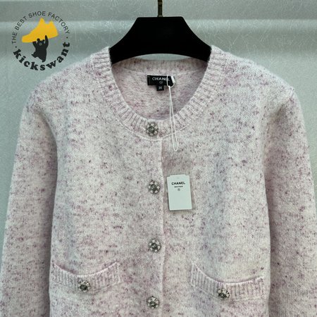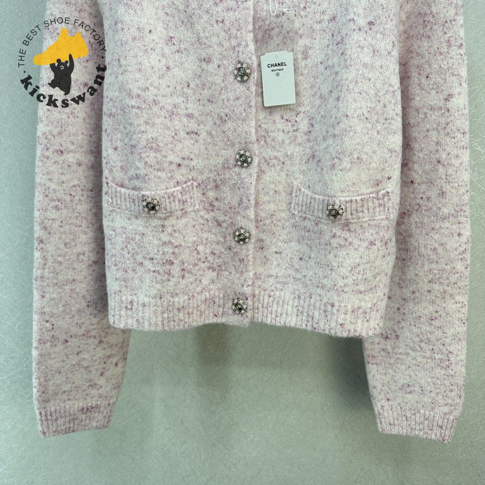 Chanel Pink Round Collar Wool Cardigan Sweater