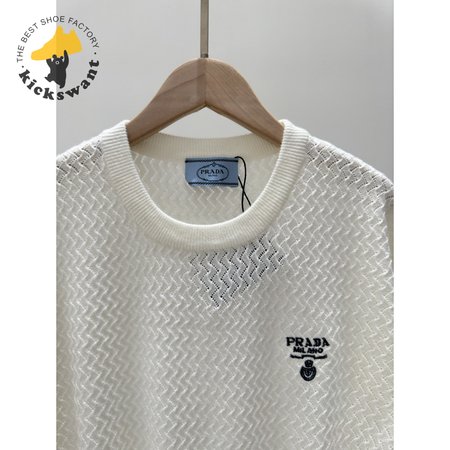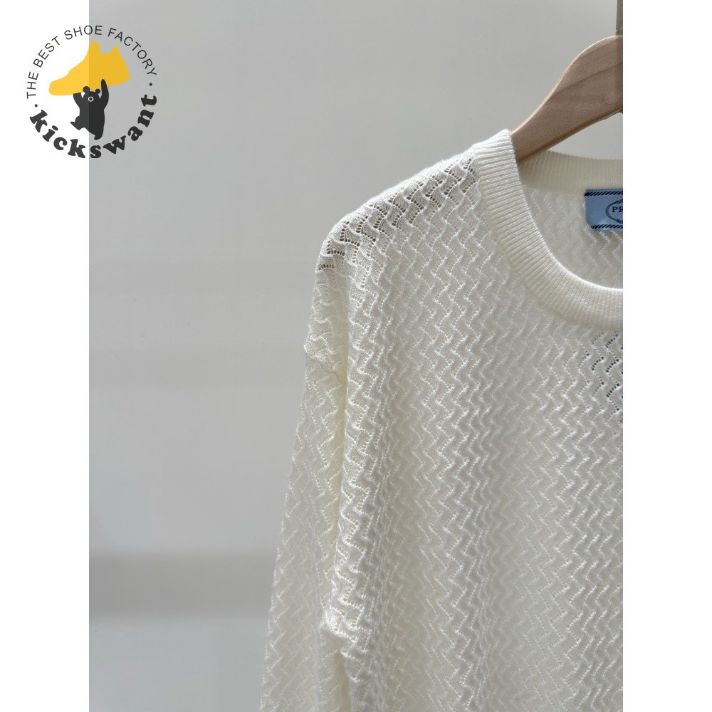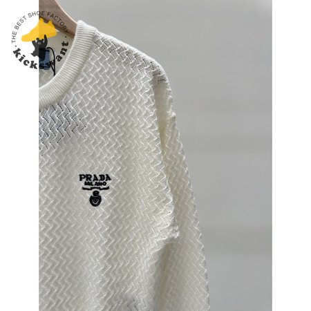 Prada Hollowed-out crew neck knitted Sweater