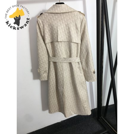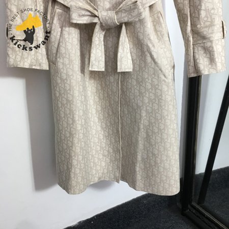 Dior Logo Print Tie-Waist Lapel Long-Sleeved Suede Trench Coat Jacket