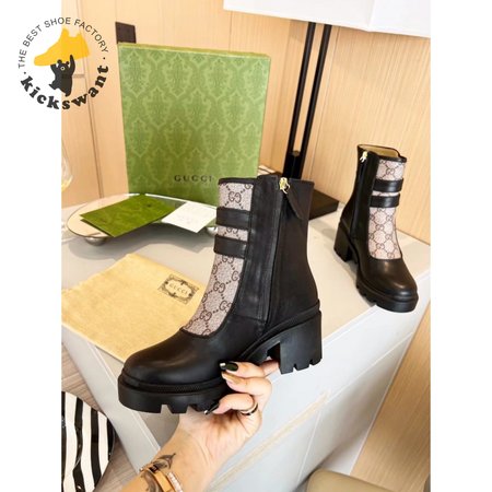 Gucci GG Ankle Boot With Buckles Black Leather 35-41
