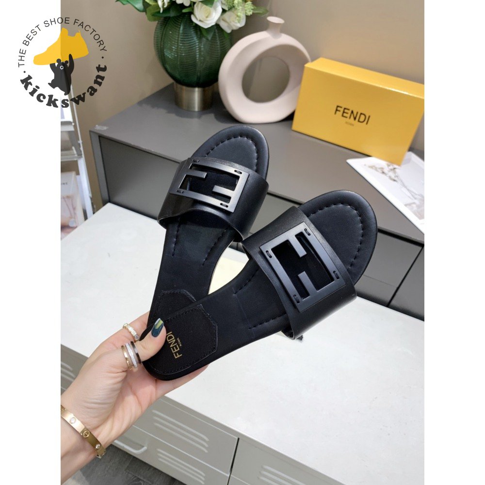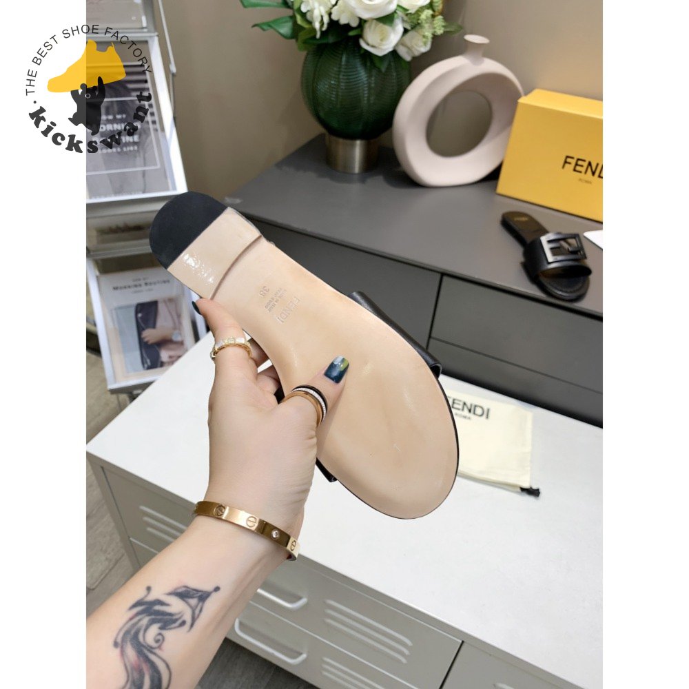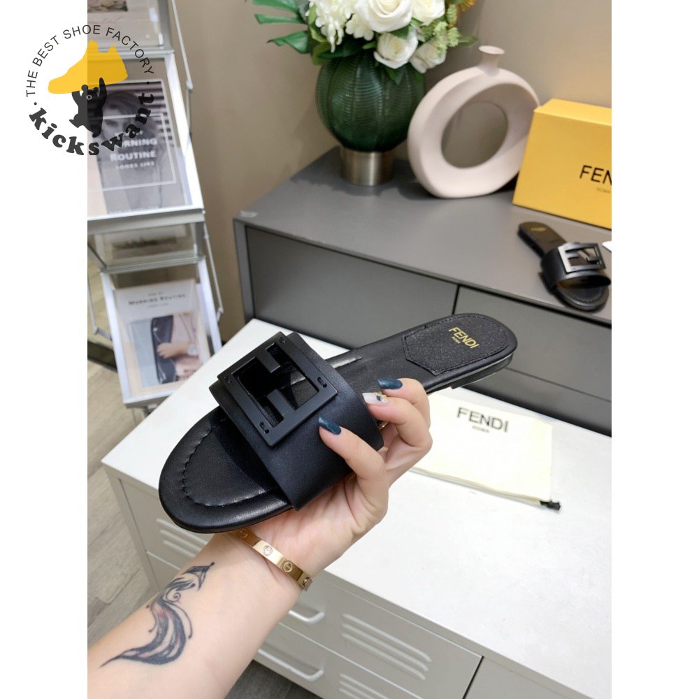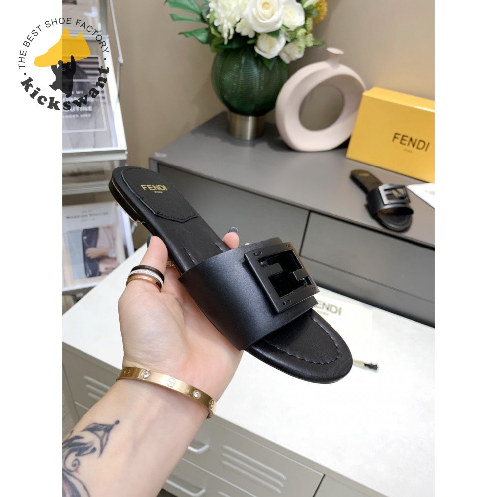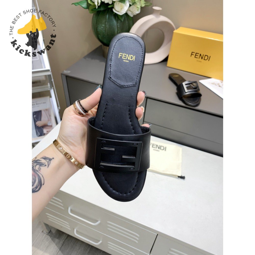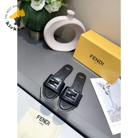Fendi Baguette Black Leather Slides 35-40