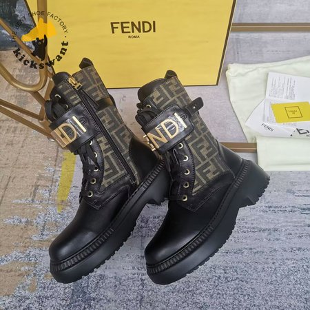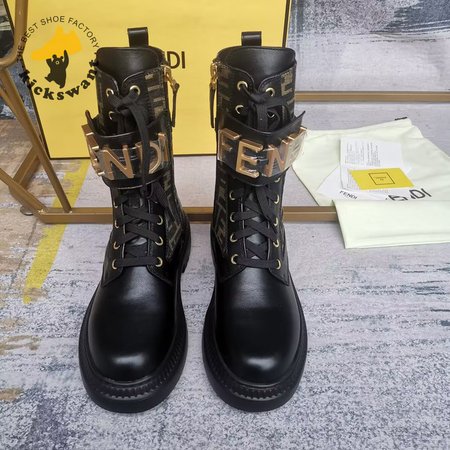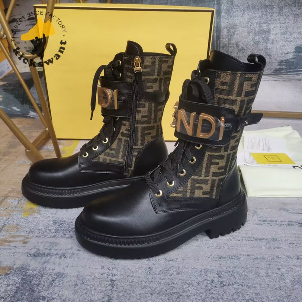 Fendigraphy Black Leather Biker Boots