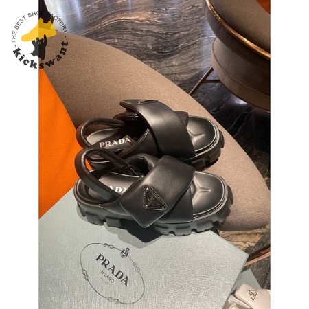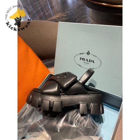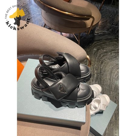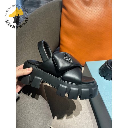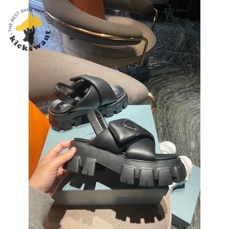 Prada Monolith Logo Patch Chunky Sole Sandals In Black