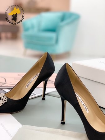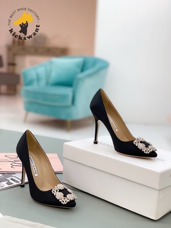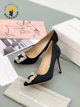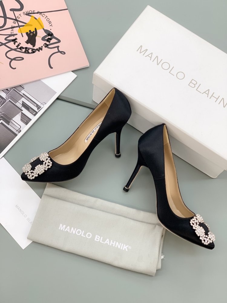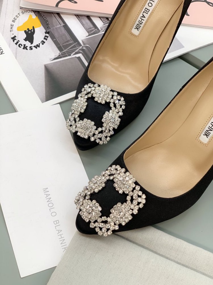 Manolo Blahnik Hangisi Black Satin Jewel Buckle Pumps 35-39